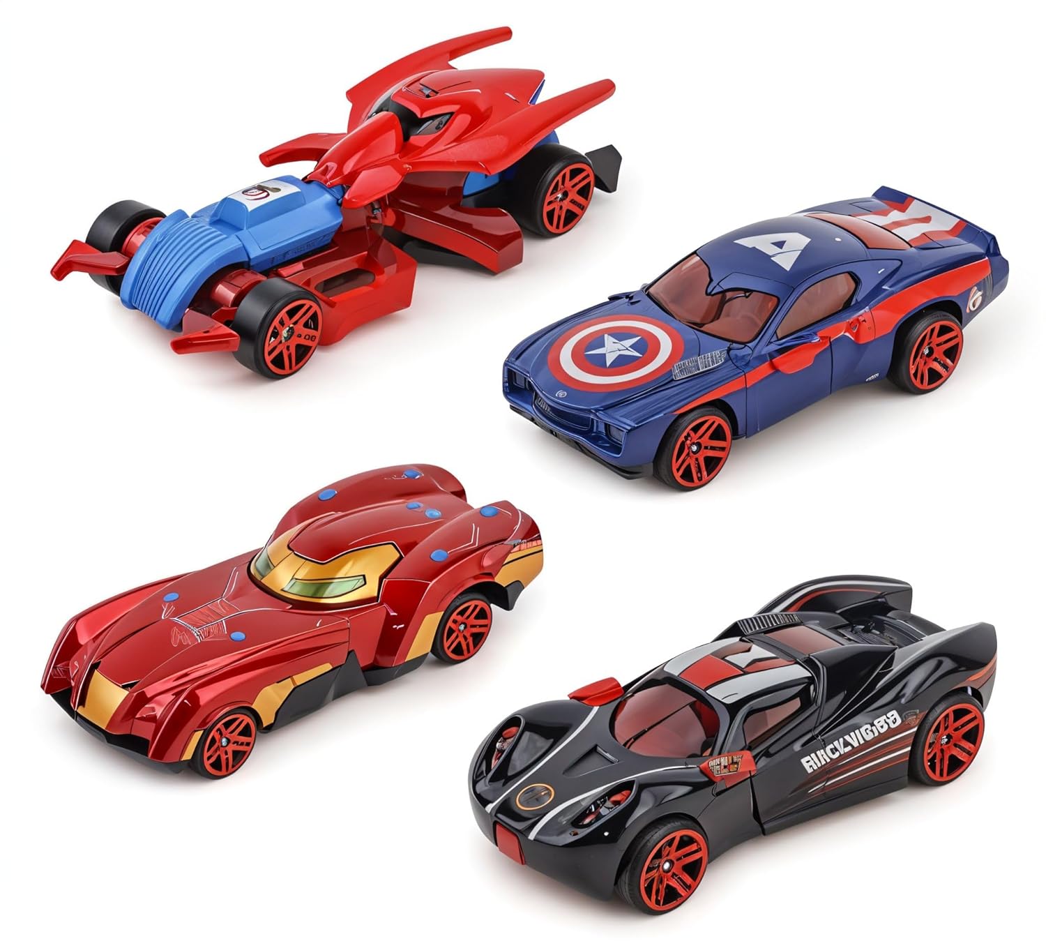 - COLLECTING FAVOURITE CARS: Kids are enjoy to collecting their favorite superheroes character theme based cars. Avengerr Metal Car is most popular cars. Our Cool Friction-Powered Model Cars Toy Collection Vehicles Set of 4 toy cars in total: